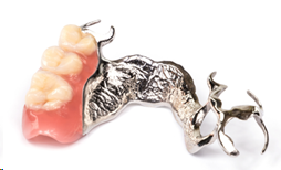- ฐานโลหะ เป็นฐานฟันปลอมที่มีความแข็งแรงสามารถออกแบบให้ส่วนฐานปิดทับเนื้อเยื่อเหงือกหรือเพดานปากให้บางและน้อยที่สุดได้ ซึ่งจะช่วยลดปัญหาการออกเสียงพูดไม่ชัดหรือการปิดพื้นที่สัมผัสอาหารในขณะรับประทาน แต่พื้นผิวบางส่วนที่รองรับฟันปลอมก็จำเป็นต้องใช้วัสดุชนิดอะคริลิกร่วมด้วย