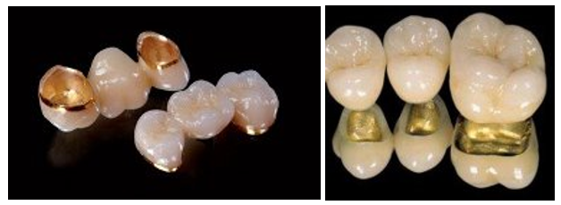 เป็นสะพานฟันที่ใช้โลหะเป็นแกนด้านใน แล้วเคลือบด้านนอกด้วยเซรามิก